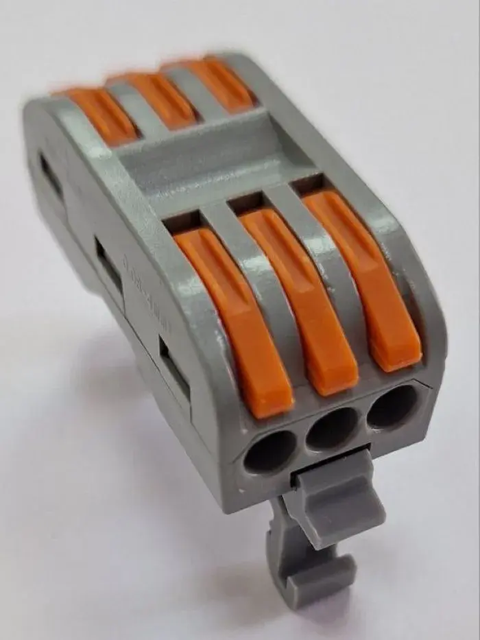 Проходная клемма РСТ-0213 — это удобное решение для быстрого и безопасного подключения проводов в электрощитах и распределительных коробках. Модель оснащена надёжными подпружиненными рычагами, которые позволяют фиксировать провод без инструмента и обеспечивают устойчивый контакт даже при вибрациях.